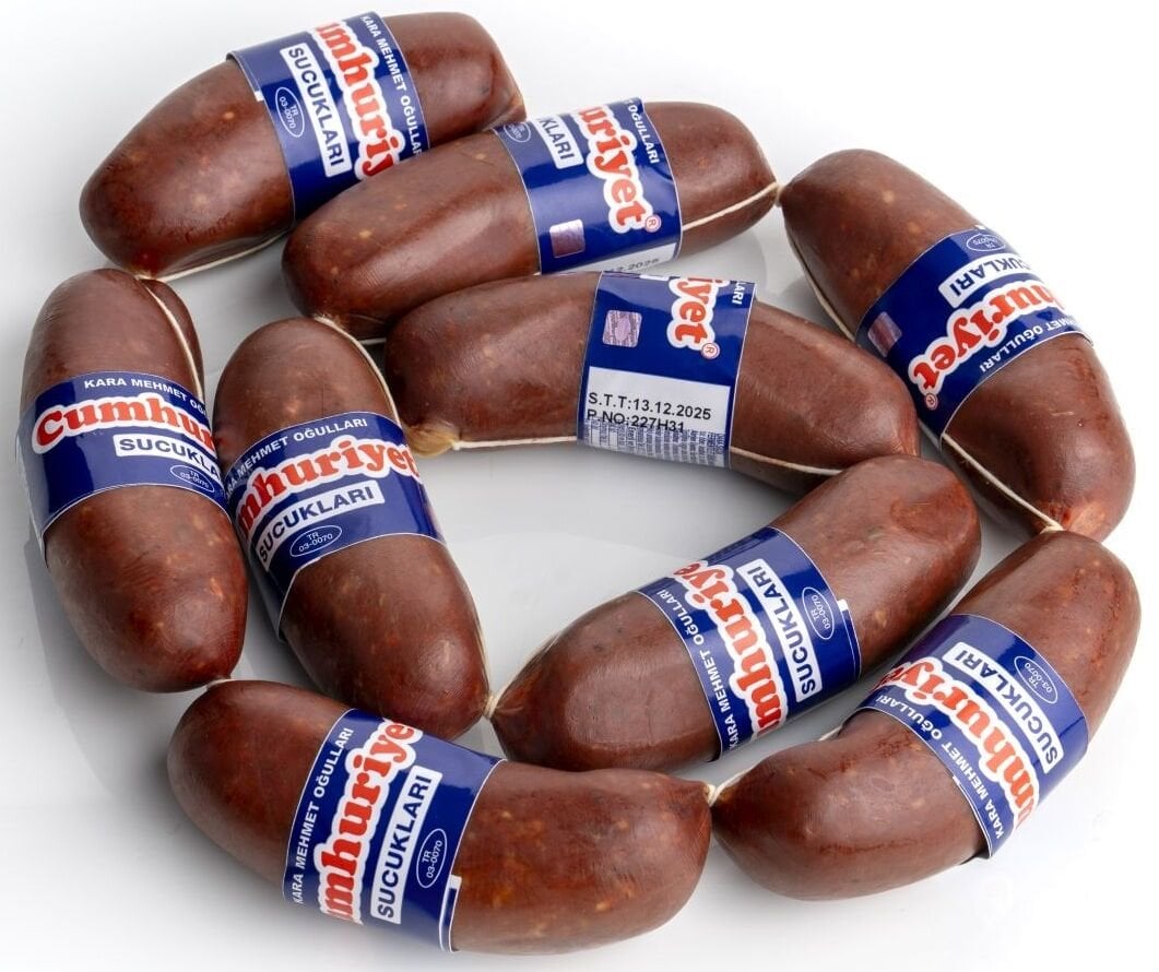 Dana eti, dana yağı, sığır yağı, baharat karışımı (kimyon, kırmızı toz biber, karabiber), tuz, sarımsak, dekstroz, stabilizör (sodyum polifosfat), koruyucu (sodyum nitrit). Alerjen Uyarısı: Eser miktarda gluten içerebilir. Koruyucu atmosferde ambalajlanmıştır. TGK Et, Hazırlanmış Et Karışımları ve Et Ürünleri Tebliğine uygun olarak üretilmiştir. Bu ürün Kalite Yönetim Sistemi TS EN ISO 9001:2015 ve Gıda Güvenliği Yönetim Sistemi TS EN ISO 22000:2018 standardına uygun olduğu belgelendirilmiş tesisimizde üretilmiştir.